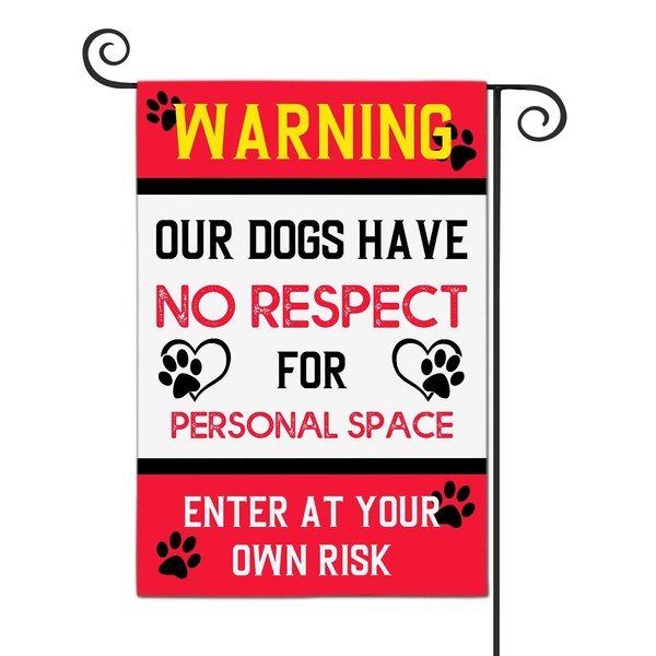 LHMUYU Warning Our Dogs Have No Respect for Personal Space Enter at Your Own Risk Home Decoration Outdoor Garden Yard Flags Sign Polyester Flag Double Sided 12 x 18 Inch