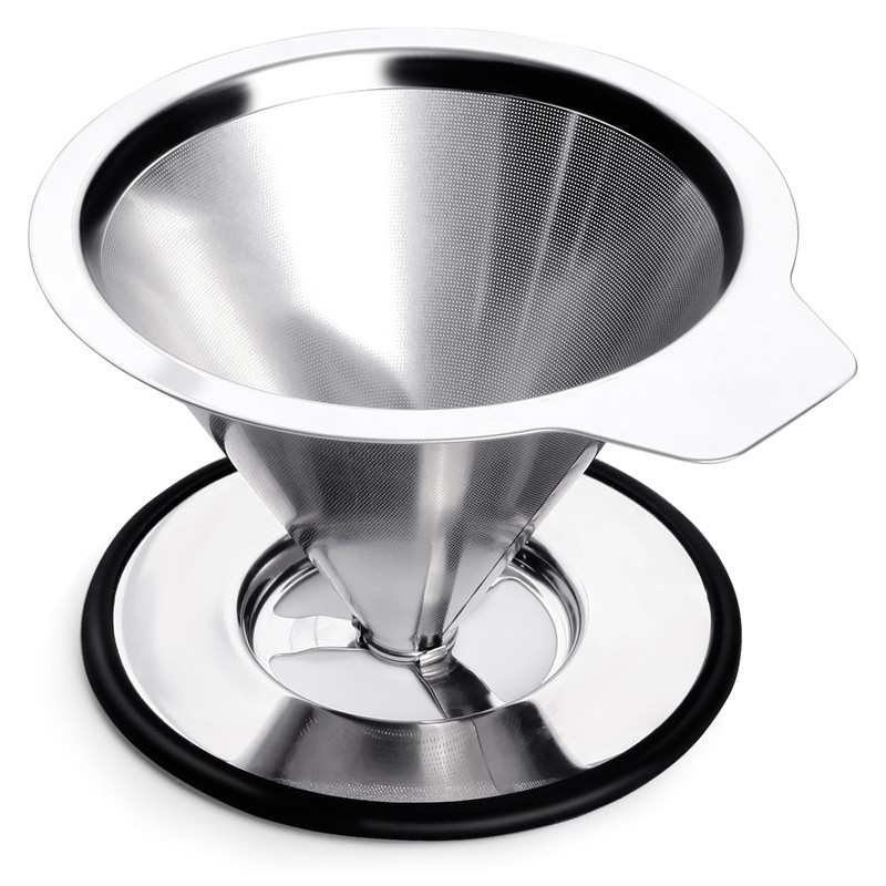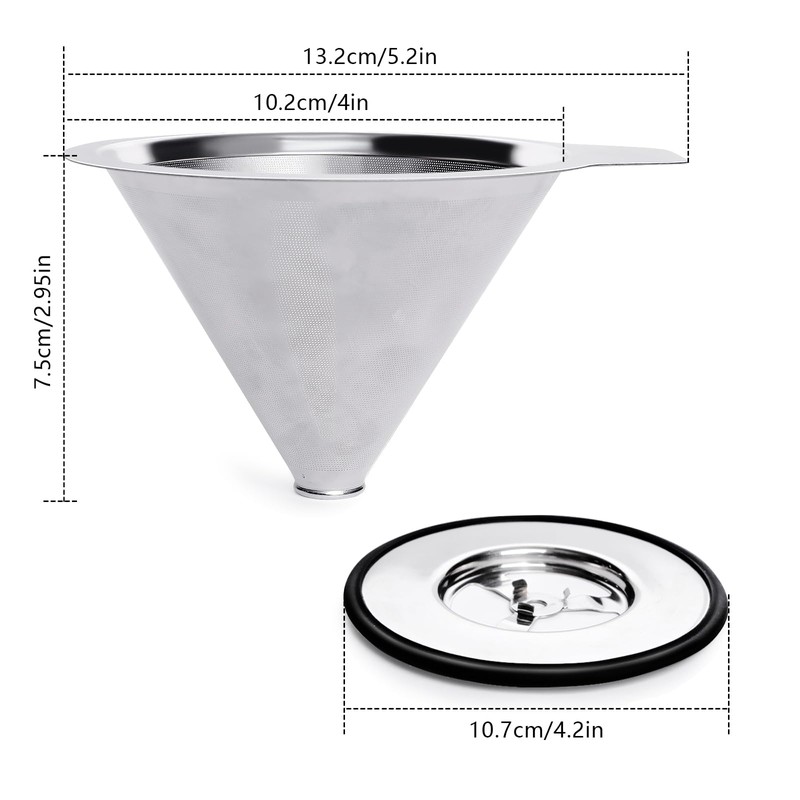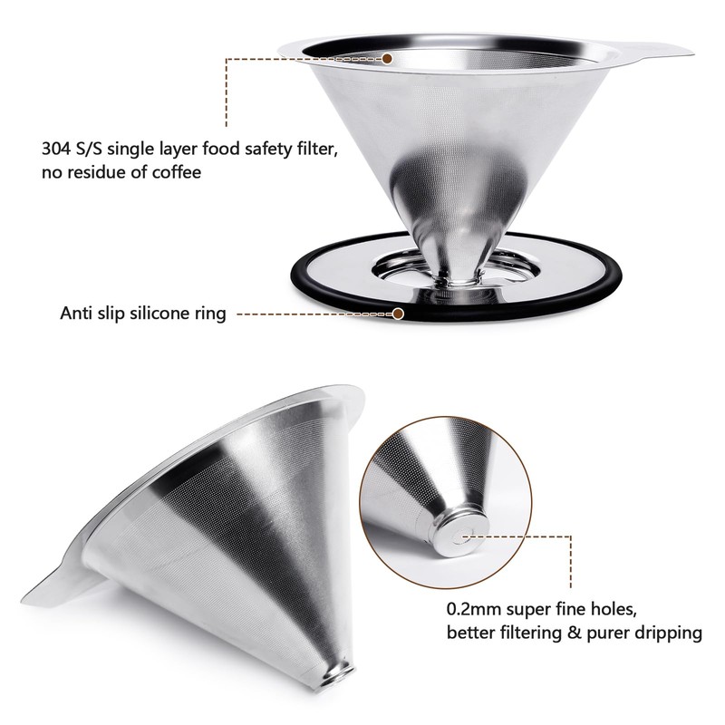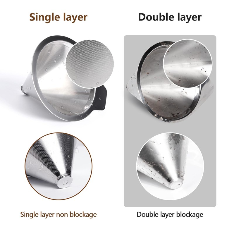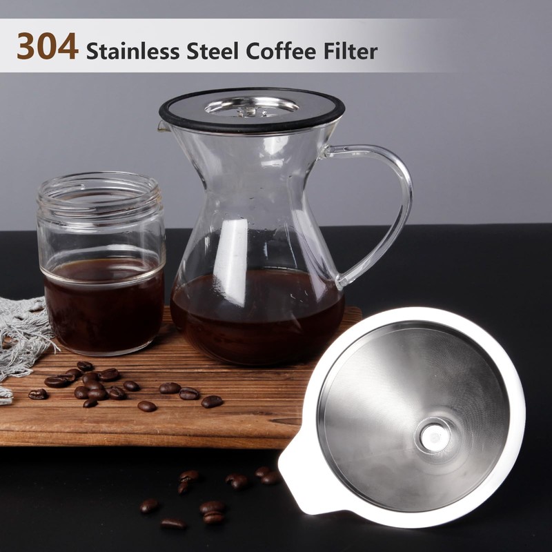 LHS Pour Over Coffee Dripper Reusable Coffee Filter Metal Cone Filter Paperless Coffee Filter Stainless Steel Pour Over Coffee Maker Single Cup Brew Coffee Filter