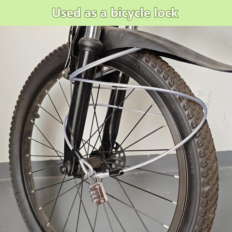 - Widely used: wire rope can be used indoors and outdoors and is perfectly compatible with various padlocks, combination locks and U-shaped locks. It can easily attach items to table legs, handles, railings, etc. and is the perfect choice for attaching bicycles, grills, gates, fences, skateboards, etc.