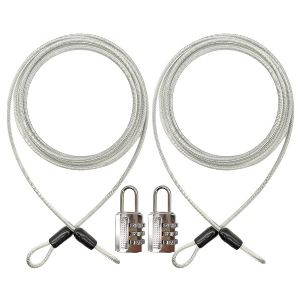 LIANCHEN Pack of 2 4 mm Cable Lock Anti-Theft Combination Lock Security Cable Braided Loop Cable Sport Safety Loop Steel Cable with Loop, Length: 2 m (Silver, 4 mm)