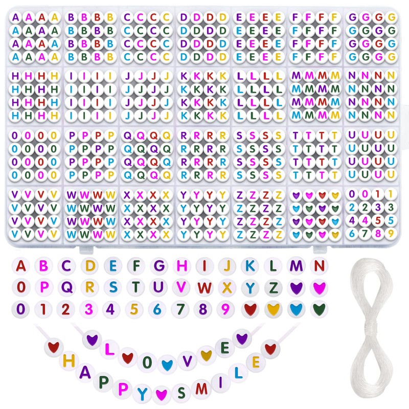- A-Z alphabet beads set boxed in 28 compartments: Liangding alphabet bead set contains 26 letters of the alphabet. With colourful heart beads and number beads. The box has 28 small compartments and is a packaged alphabet bead set. The clear alphabetical arrangement allows you to quickly find the required letters, saving energy and time. Each letter consists of approx. 40 beads