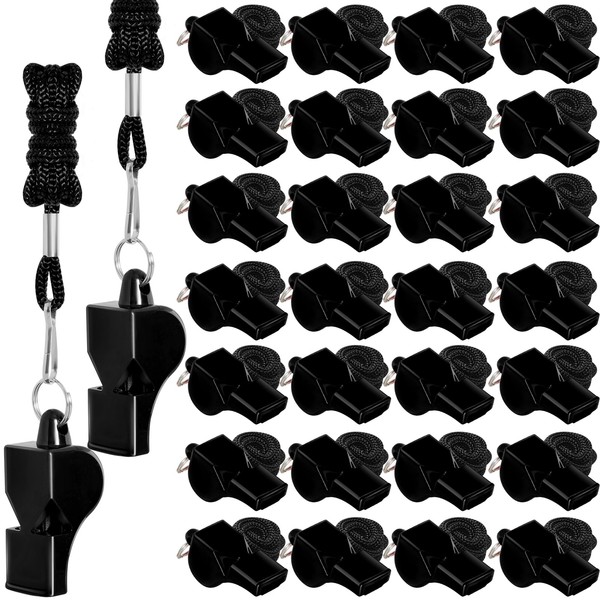 - Complete Set: Receive 30pcs of Black plastic whistles with lanyards. These whistles are exceptionally dependable and long-lasting, able to endure freezing temperatures, clogging, and decay over time. Depend on them to produce a reliable sound even in the toughest situations.