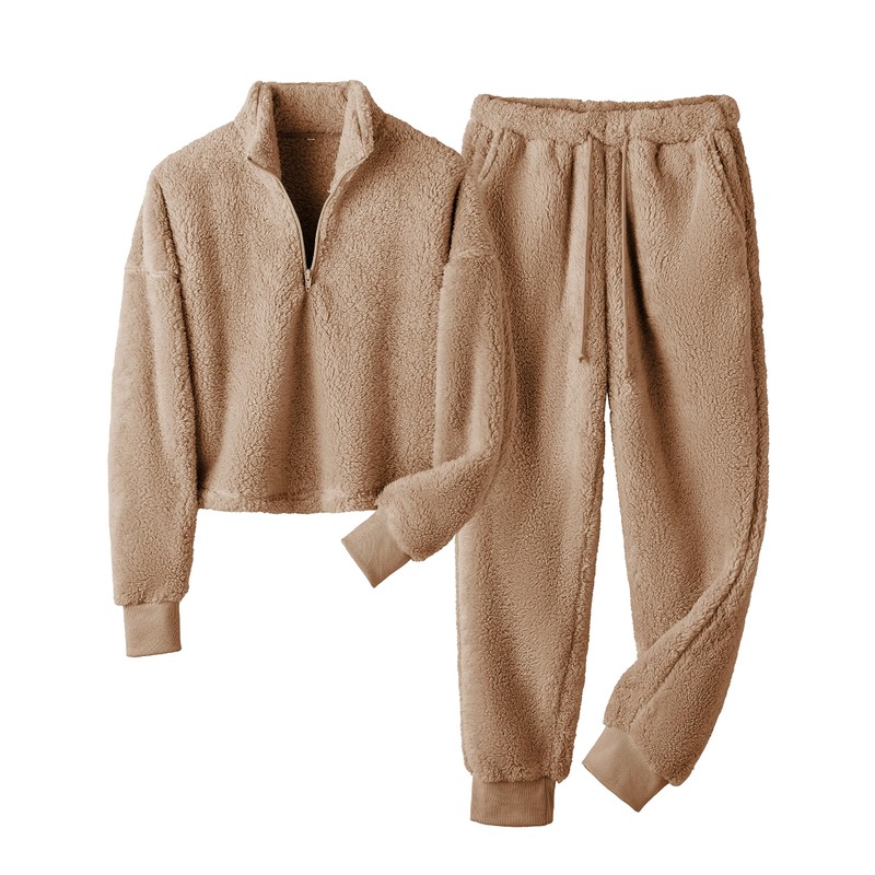Lianlive Fleece Pajamas Women Warm Winter Fluffy Teddy Lounge Sets for Women Fuzzy Plush Sleepwear 2 Piece PJ Sets (Camel-L)