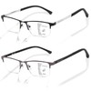 - 【TRIFOCAL READERS】Experience the perfect trifecta of readability with lenses that are divided into three parts. The bottom part boasts your selected strength for close reading, while the top area is half the reading strength and lets you see up to 3-5 ft. The center serves as an effortless transition area that ensures comfortable usage with computers and other devices. Please note that the top strength is not 0, and it may take a week to adjust to these multifocal reading glasses