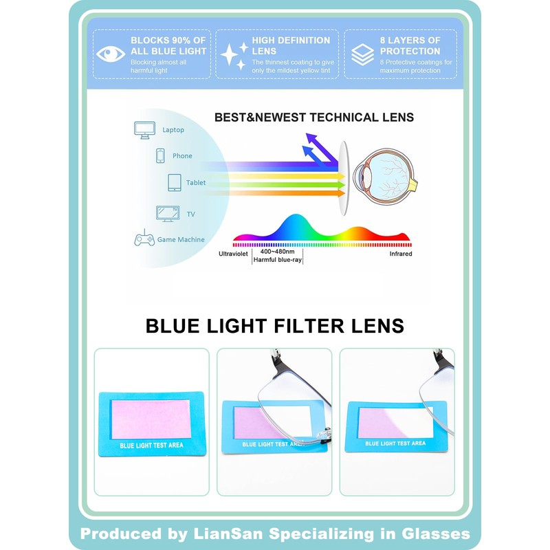 - 【QUALITY BY LIANSAN】Experience enhanced reading comfort and blue light blocking function to reduced eyestrain headache with our commitment to quality. Created by LianSan, these reading glasses feature durable materials and exceptional craftsmanship to ensure that they are both comfortable and long-lasting