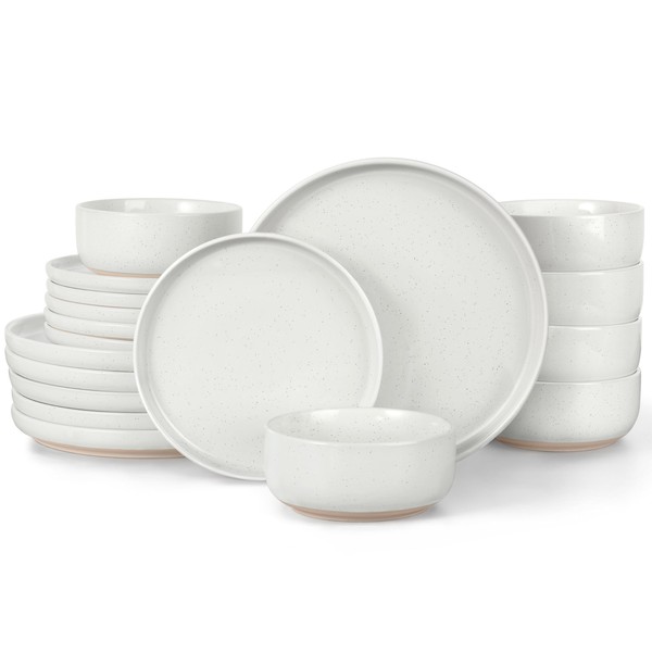 - Service for 6, these 18-piece porcelain dinnerware set contains 6pc 10.5’’ dinner plates, 6pc 7.75’’ salad plates and 6pc 22oz cereal bowls, speckle white plates and bowls set is ideal for family dinners, gatherings, and everyday meals