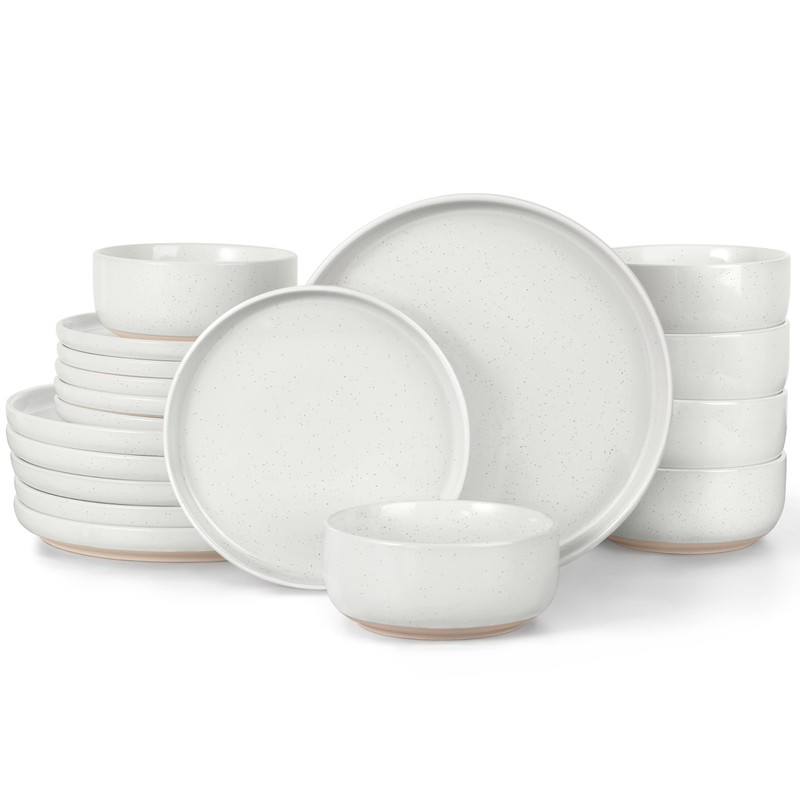 - Premium Stoneware, crafted from natural clays and glaze finish, the stoneware dish set is fired at 2400℉ high temperature for 13 hours, the plates and bowls sets are completely lead-free and cadmium free, no harmful substance leaching into the foods