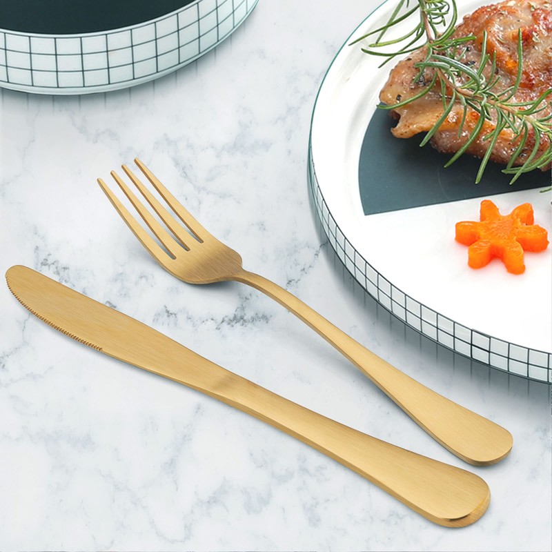 SATIN GOLD FINISH -- Unique matte gold silverware will impress you by its elegance and stylish appearance