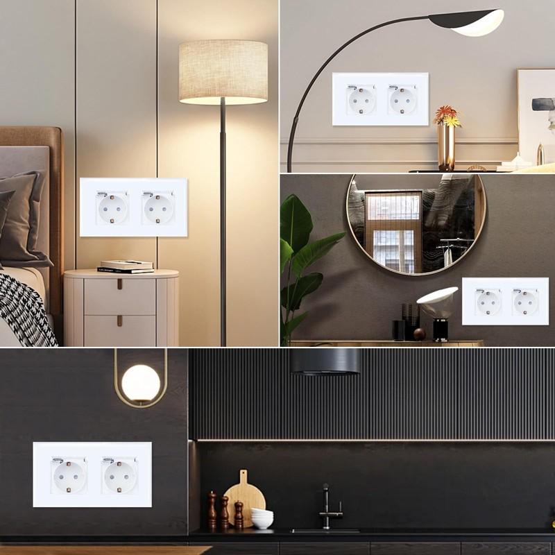 - Function: Neutral line is required. Glass Schuko recessed socket with earthing contacts and electronic short circuit protection. Prevent the occurrence of leaks and electric shock; the plate is reassembled