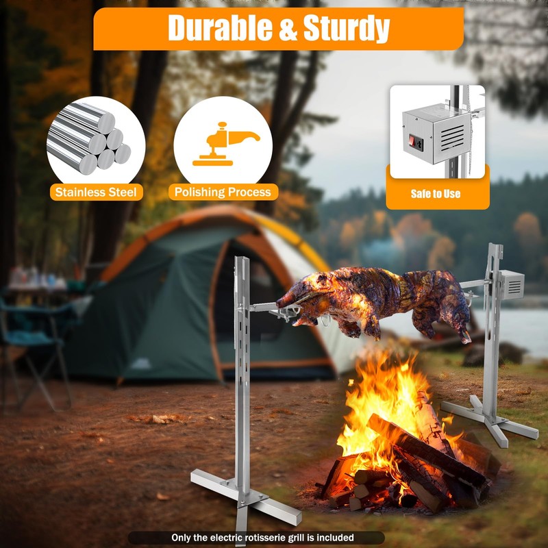 - [Easy to Clean] Pig roaster detachable design and smooth surface make it simple to clean. When it is dirty, you can use a wet towel or rinse with water directly. It can be assembled easily by using screws, and the detailed installation instructions can help you quickly complete the installation