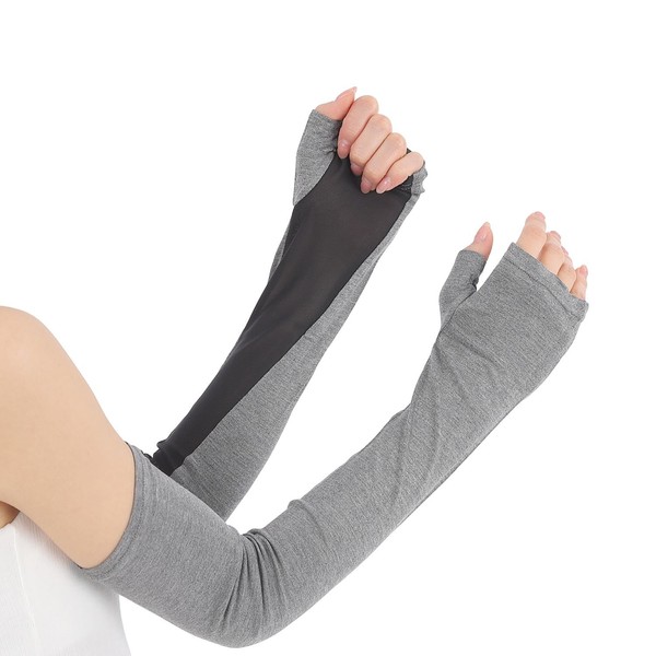 [Liapom] アームカバー UVカット 冷感 日焼け防止 指先まで レディース ひんやり メッシュ 通気性 腕カバー 夏用 (ロングチャコール)