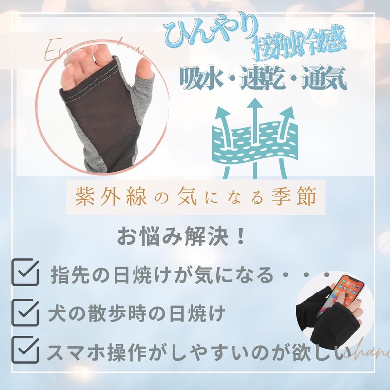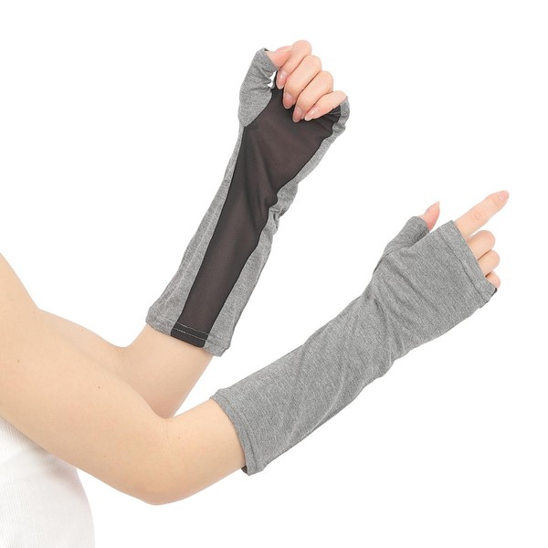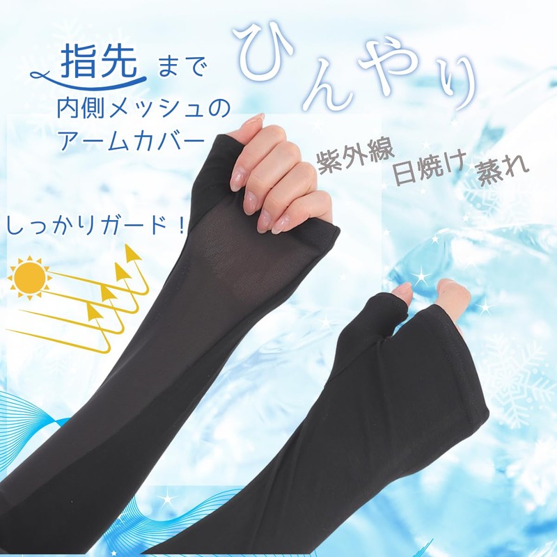 - 暑い季節でも快適に過ごせる、接触冷感素材のアームカバー。肌に触れた瞬間ひんやり感じる素材に加え、内側は通気性のよいメッシュ構造で蒸れにくく、汗ばむ季節もサラッと快適に着用できます。