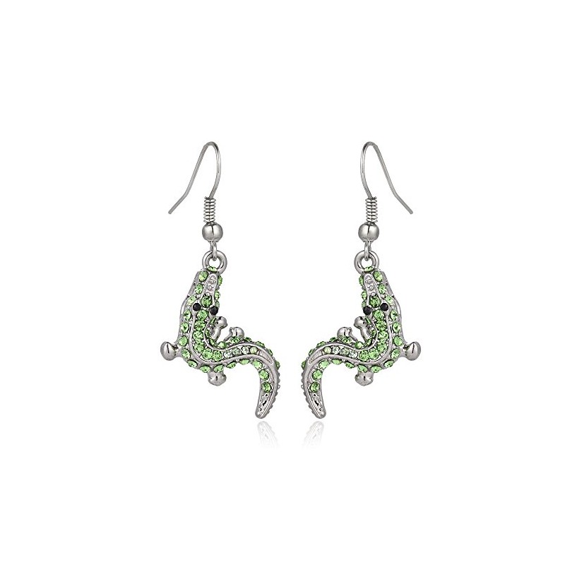 Liavy's Alligator Crocodile Fashionable Earrings - Fish Hook - Sparkling Crystal - Unique Gift and Souvenir