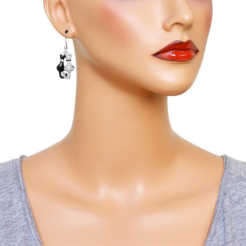 Liavy's Black & White Cat Fashionable Earrings - Sparkling Crystal - Hand Painted - Fish Hook - Unique Gift and Souvenir