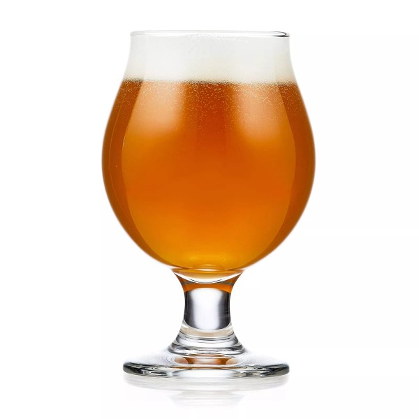 - Belgian Beer Glasses Set: Our traditional Belgian style set features elegant tulip glasses for beer with a wide bowl and narrow top; this set of round glasses for beer contains six, 13 Oz stemmed Belgian craft beer glasses