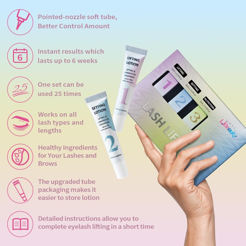 - TIPPS – Dieses brow lifting set enthält einen Wimpernlifting-Balsam mit Erdbeerduft, einen Wimpernlifting-Kleber mit pflegenden Inhaltsstoffen. Beim Kämmen der Wimpern auf den Wimpernlifting-Pads sollten Sie den Wimpernlifting-Balsam jedoch 2-3-mal auftragen. Beim Kämmen der Wimpern auf den Wimpernpads können Sie die Wimpern andrücken und innehalten, damit sie besser sitzen. Da der Wimpernlifting-Balsam pflegende Inhaltsstoffe enthält, müssen Sie sich keine Sorgen machen, zu viel Lotion aufzutragen