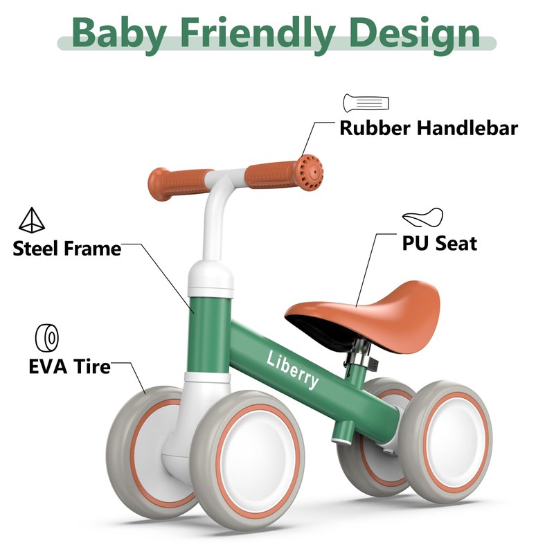Liberry Liberry Baby Balance Bike for 1 2 3 Year Old Boys Girls, 4 Wheels Toddler Balance Bike with Adjustable Seat, Infant's First Birthday Gift (Green)