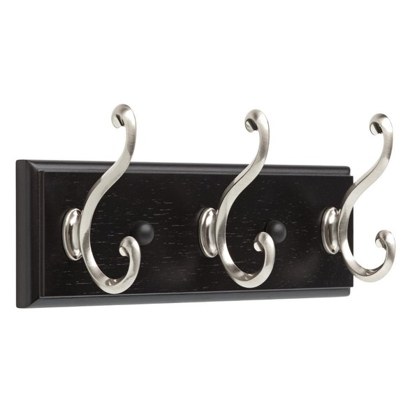 Liberty 10 Inch Hook Rail/Coat Rack with 3 Scroll Hooks, Black and Satin Nickel