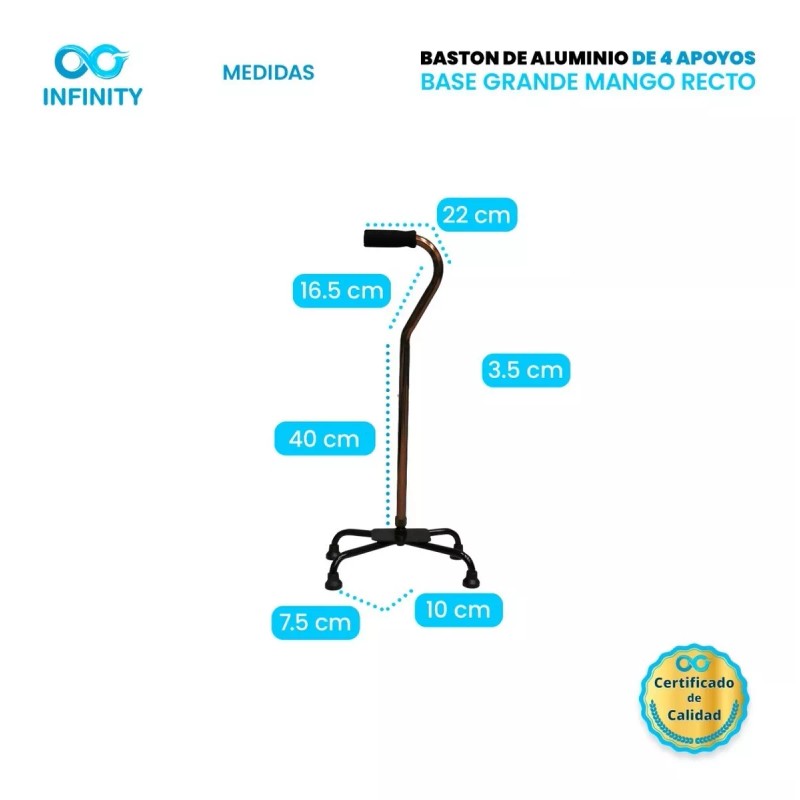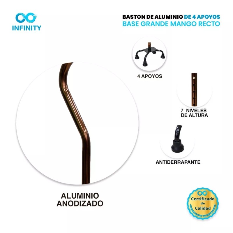 BASTON DE ALUMINIO INFINITY DE 4 APOYOS BASE GRANDE MANGO RECTO BRONCE