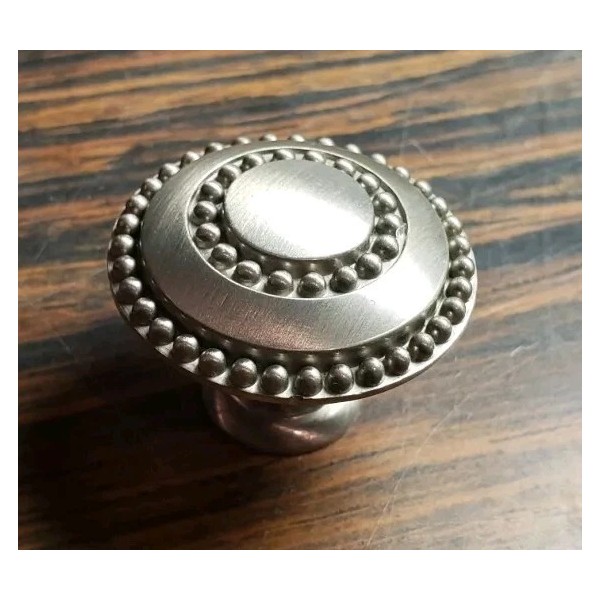 The Brainerd PBF808V-SN-C 1 3/8" Double Beaded Cabinet Drawer Knob in Satin Nickel is a stylish and functional hardware accessory for cabinets. Made of metal with a satin nickel finish, this beaded drawer knob adds a touch of elegance to any cabinet or drawer. The double beaded design gives it a unique and decorative look, perfect for upgrading the appearance of your furniture. Ideal for home improvement projects, this Liberty brand knob is a durable and attractive choice for enhancing the aesthetics of your living space.