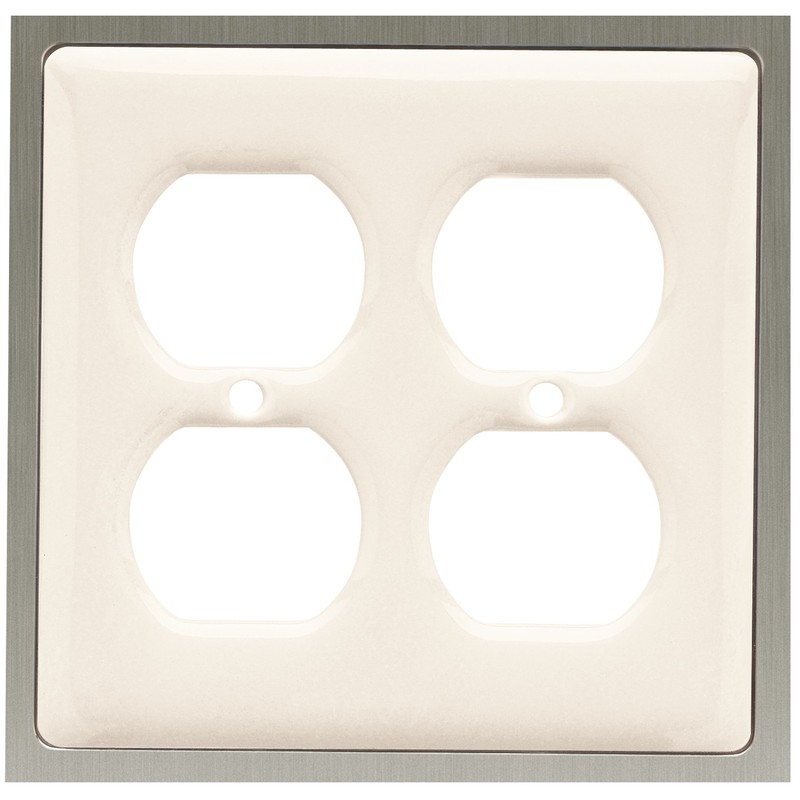 Liberty Hardware 63995 Ceramic Insert Double Duplex Wall Plate, Bisque