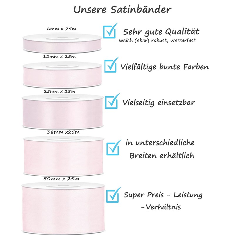 - The beautiful satin ribbon powder pink 6 mm offers versatile uses: ribbon for crafts, gift wrapping for gifts, Christmas gifts, Christmas decoration, wedding decoration, maypole ribbons, lace
