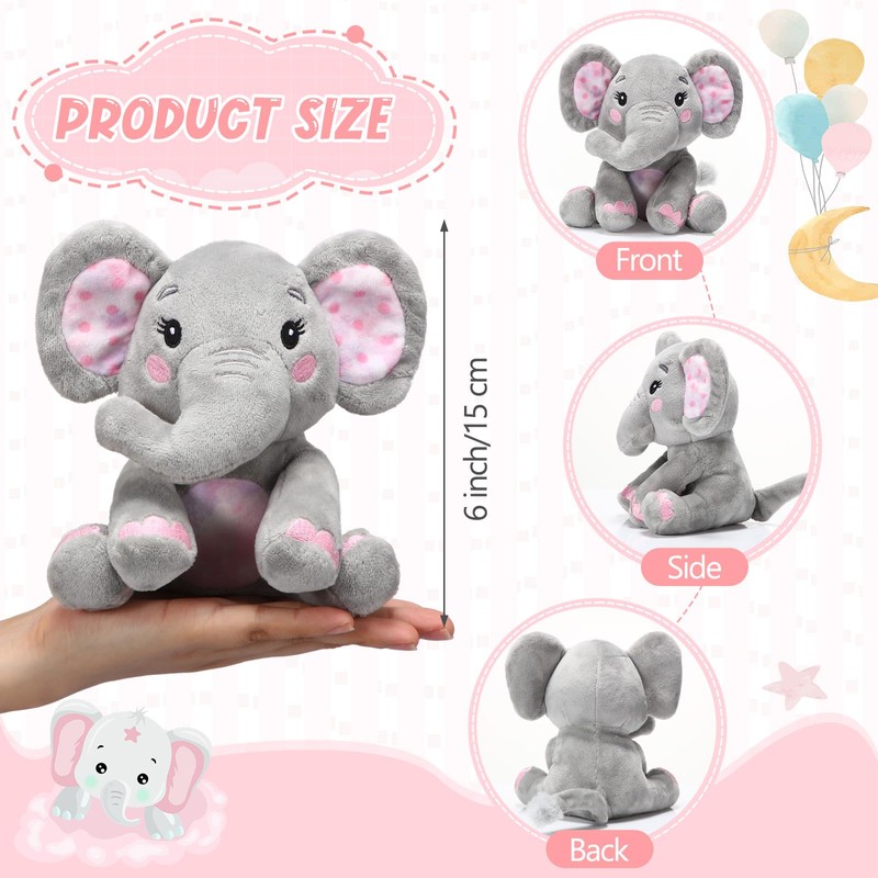 - Proper Size: this elephant stuffed animal is about 6 inches tall, making it the proper cuddly companion for your child; Its compact size allows for easy handling and carrying, so your little child can take it on all their adventures; Whether it is for playtime or bedtime, this plush elephant is just the nice size for cozy hugs and snuggles