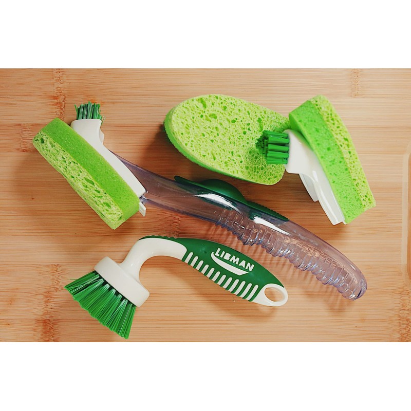 Libman - Juego de cepillos para limpiar vasos y platos con cepillo para polvo de cocina curvado y dos recambios de esponja