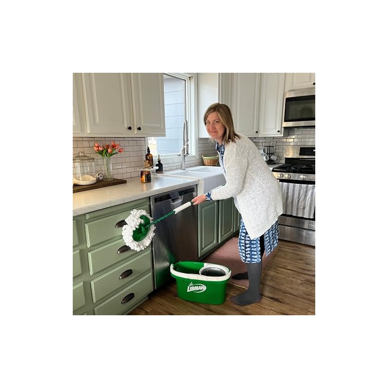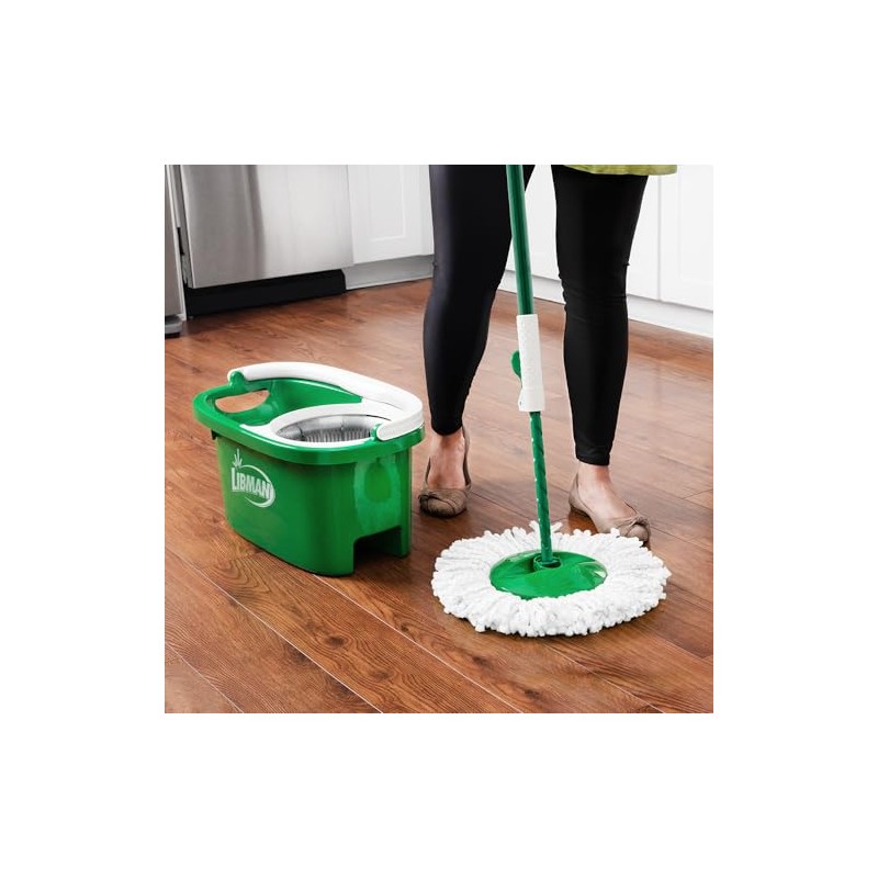 The Libman Tornado Spin Mop System is the perfect all-in-one mopping solution for effortless cleaning. Its innovative design boasts a generously-sized microfiber mop head that effectively absorbs and removes more water, leaving your floors drier and cleaner in no time. The heavy-duty bucket and spinning chamber work together seamlessly to efficiently remove dirt and excess water from the mop head, making it a great choice for deep cleaning or everyday use. Designed with precision and built to last, this mop features an expertly molded lower handle that can withstand impacts and heavy use. The locking tab is designed for easy unlocking, allowing you to wring the mop head efficiently and get back to cleaning. With every pump of the handle, the mop head becomes drier, giving you complete control and customization over your cleaning experience. Say goodbye to traditional mops that leave your floor too wet or too dry, and switch to the Tornado Spin Mop for a superior cleaning experience Overall, the Libman Tornado Spin Mop System is a reliable and convenient cleaning solution that makes mopping a breeze. It's a must-have tool for anyone looking to maintain a sparkling clean home without the hassle.