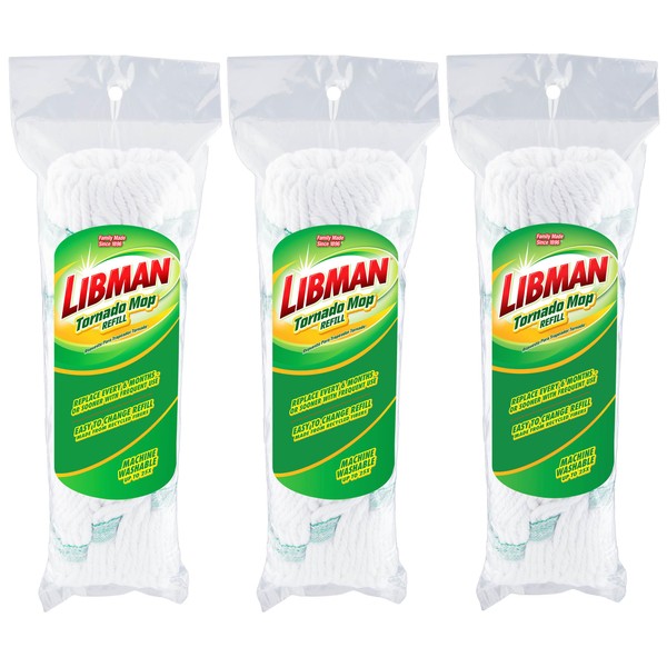 Libman Tornado Mop Refill, Direct Replacement Head for Libman Self Wringing Twist Mop, Cotton, Machine Washable, 3 Pack
