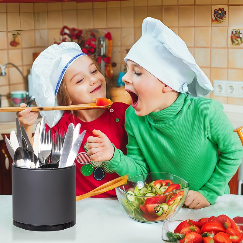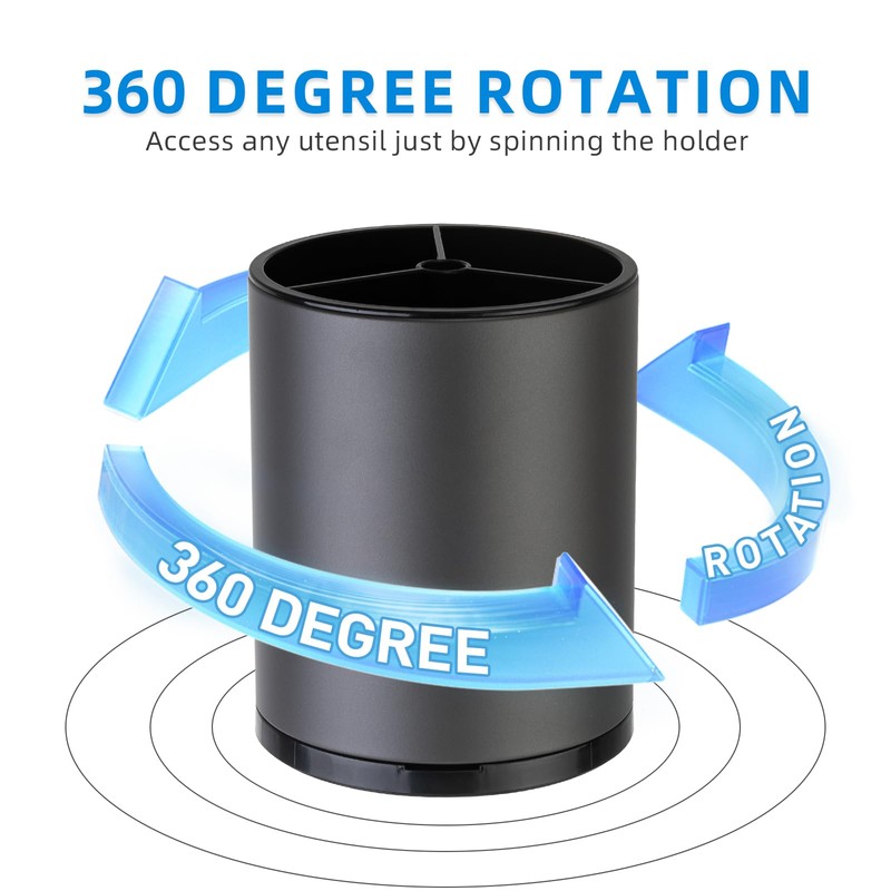 - 360° Rotation Caddy:360 °utensil holder rotating tableware storage rack,kitchen utensil organizer the unique rotating design facilitates the use of cooking tools,the large bottom of the tableware holder on the kitchen counter comes with 4 non slip rubber pieces for easy fixing of utensils and protection from scratching the kitchen countertop.providing an easy and efficient storage solution for all of your kitchen utensils.