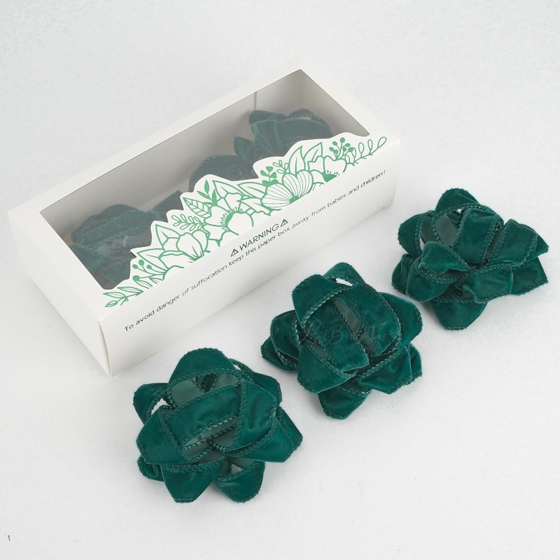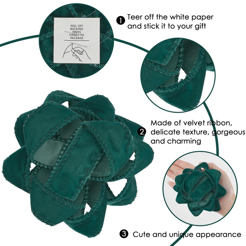 LiBongTa 4.5" Dark Green Gift Bow Self Adhesive Ribbon Bows, Christmas Package Bow, Green Bow for Gift Wrapping, Velvet Gift Bow for Present, Treat Bags, Gift Bags, Party Decor-6 Counts