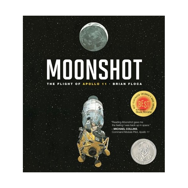 Starred Review. Grade 2–5—Large in trim size as well as topic, this stirring account retracesApollo 11's historic mission in brief but precise detail, and also brilliantly captures the mighty scope and drama of the achievement. Rendered in delicate lines and subtly modulated watercolors, the eye-filling illustrations allow viewers to follow the three astronauts as they lumber aboard their spacecraft for the blastoff and ensuing weeklong journey ("…there's no fresh air outside the window;/after a week this small home will not smell so good./This is not why anyone/wants to be an astronaut"). They split up so that two can make their famous sortie, and then reunite for the return to "the good and lonely Earth,/glowing in the sky." Floca enhances his brief, poetic main text with an opening spread that illustrates each component ofApollo 11, and a lucid closing summary of the entire Apollo program that, among other enlightening facts, includes a comment from Neil Armstrong about what he said versus what he meant to say when he stepped onto the lunar surface. Consider this commemoration of the first Moon landing's 40th anniversary as a spectacular alternative for younger readers to Catherine Thimmesh'sTeam Moon(Houghton, 2006).—John Peters, New York Public LibraryCopyright © Reed Business Information, a division of Reed Elsevier Inc. All rights reserved.