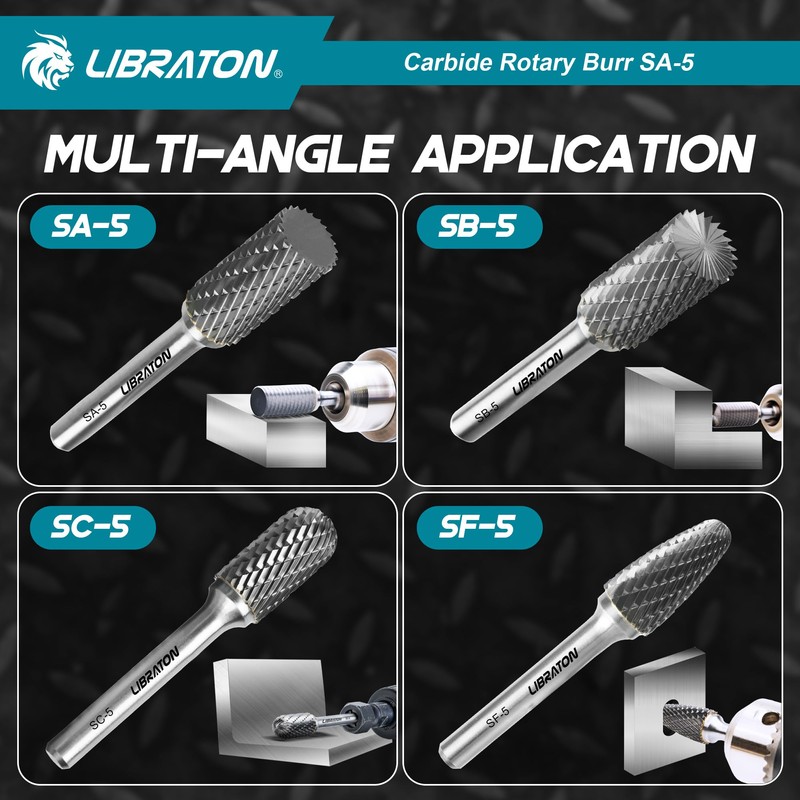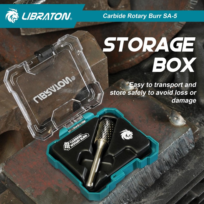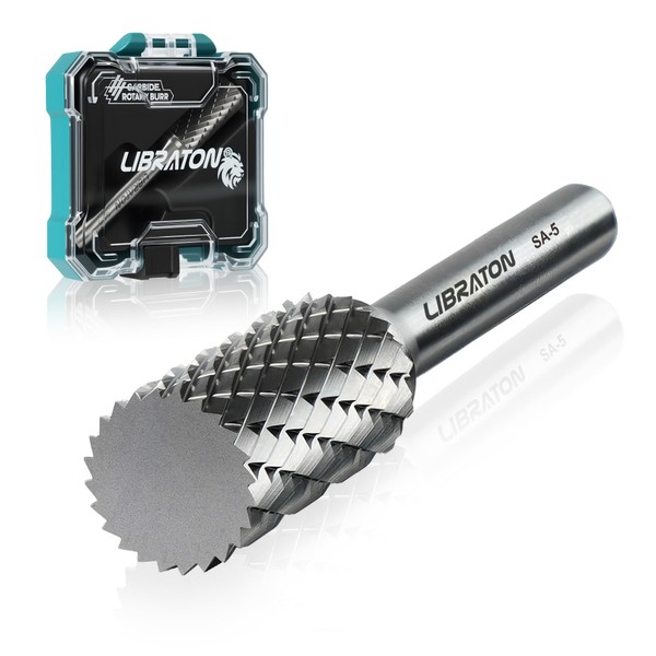 Libraton Carbide Burr Bit SA-5, Double Cut Die Grinder Bits 1/4" Shank, Tungsten Carbide Burr Set for Metal Steel, Deburring Carving Polishing, Rotary Tool Bits Protective Storage Case