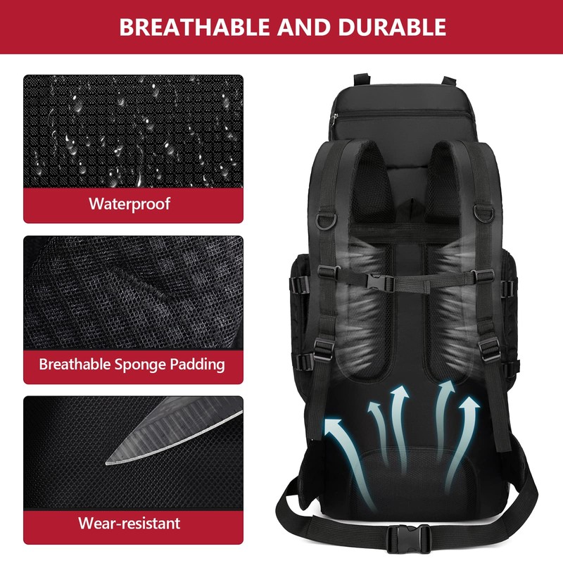 - 【Comfortable and Ergonomic】: Our camping backpack is ergonomically designed with an adjustable chest strap belt, shoulder straps and waist belt that distribute stress evenly rather than concentrating it on the back or waist. The large backpack for hiking has a thickened 3D deflected breathable sponge panel to make your journey more comfortable.