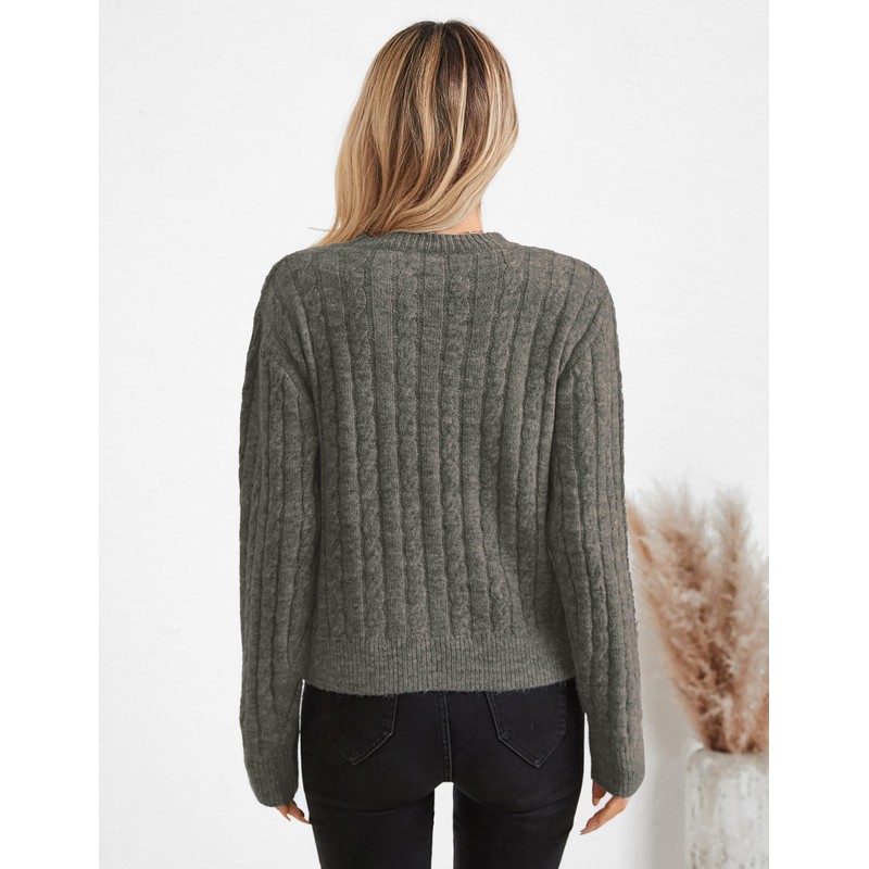 - Design Features: Classic pullover sweater with a timeless cable knit pattern. Features a crewneck, drop shoulders, and long sleeves, offering a blend of casual and dressy appeal.