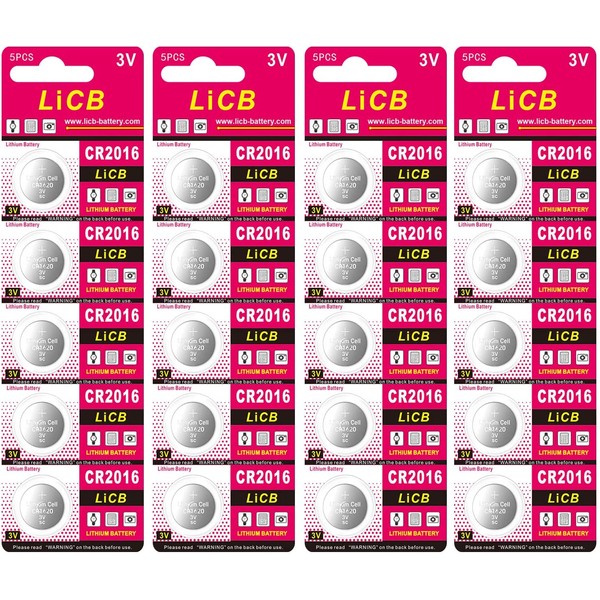 LiCB CR 2016 Battery,CR2016 Lithium Batteries,3 Volt Coin & Button Cell (20 Pack)