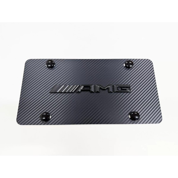 License Plate Frame 1pc 3D BlackAMG Emblem Carbon Style Aluminum Vanity Front License Plate