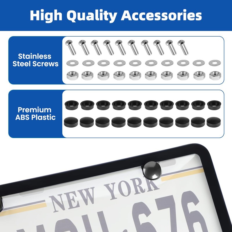 • 【Trendy Design】Our license plate frames were designed with style and functionality in mind. The transparent frames won't block your license plate but also protect it from weather and other cars.