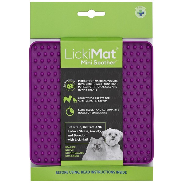 • TAILORED FOR SMALL DOGS: Ideal as a slow feeder and alternative bowl for small dogs, LickiMat Mini is also a treat dispenser suitable for dogs of all sizes. Use Mini Buddy for Raw and Wet Foods, Cooked Pumpkin, Bananas. Use Mini Soother for Soft and Runny/Liquid Foods (best for Anxiety). Use Mini Playdate for Wet Food, Canned Food, Kibble and Soaked Kibble, and Freezing Treats.