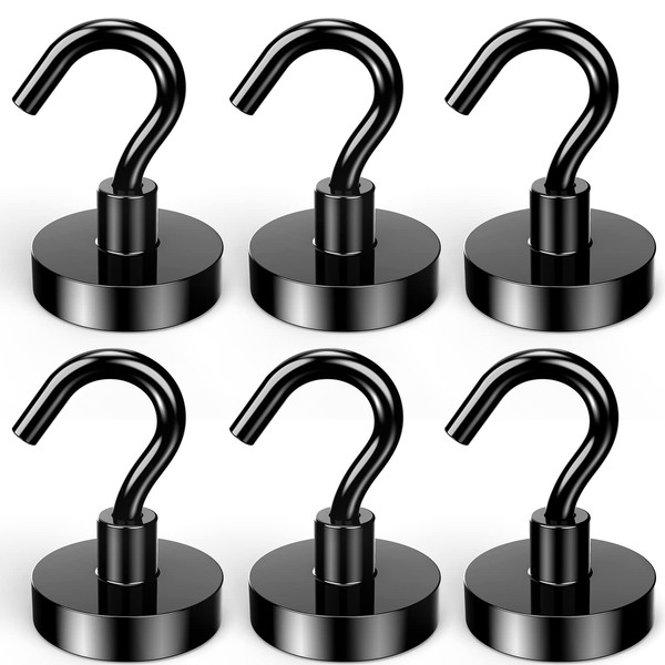 Lictin 6 Pack Magnetic Hooks, 80lb+ Extra Strong Magnet with Hook for Fridge, Heavy Duty Cruise Hook for Ceiling, Small Magnetic Holder (Black, 6PCS)