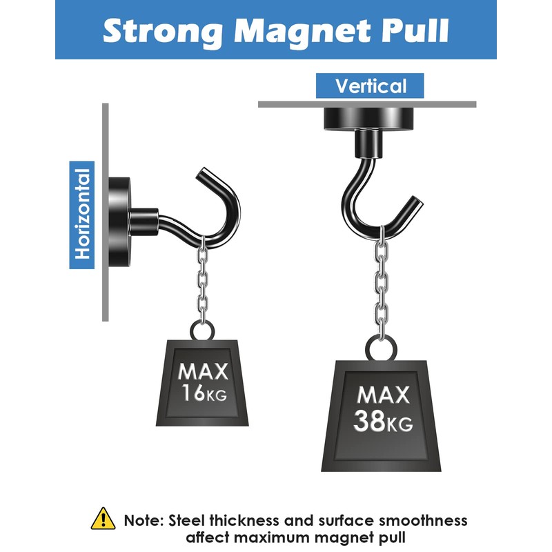 - 🧲 Multi Purpose: Magnetic hooks can be used for doors, kitchens, bathrooms, cabinets, garages, workplaces, lockers, gyms, sheds,cruises, etc-anywhere decorating and storage.
