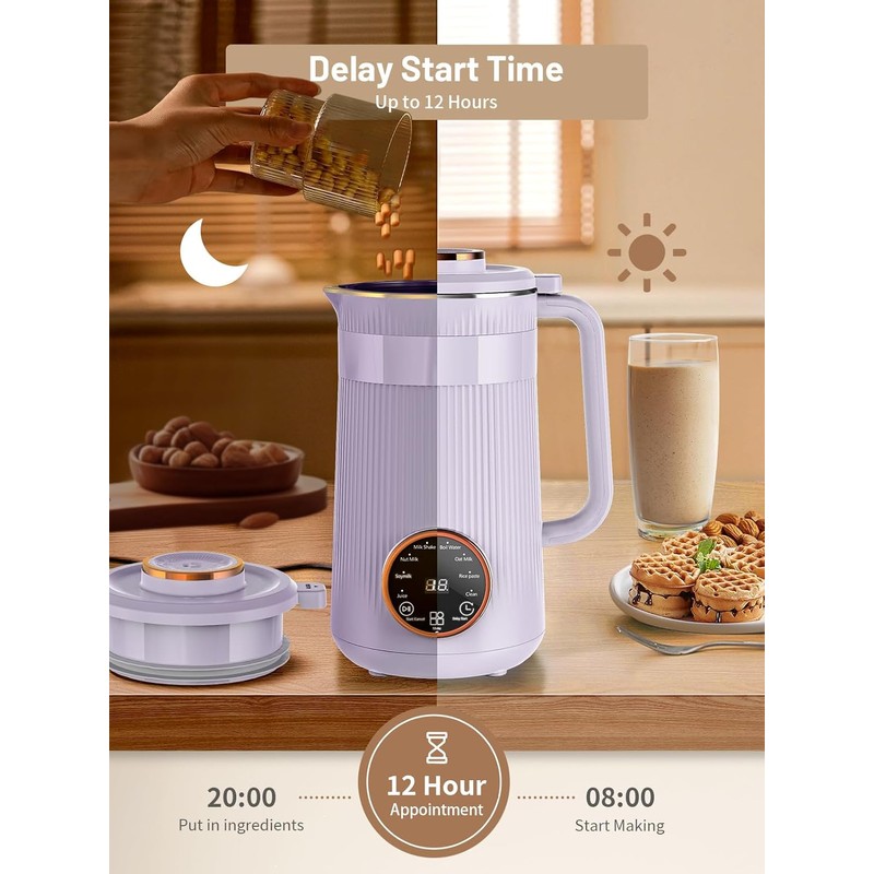 【Función de Temporizador con Retraso de 12 Horas】 El temporizador de retraso permite programar el dispositivo hasta 12 horas. Prepara todo por la noche y despierta con leche de soja fresca, combinando comodidad y frescura desde la mañana.