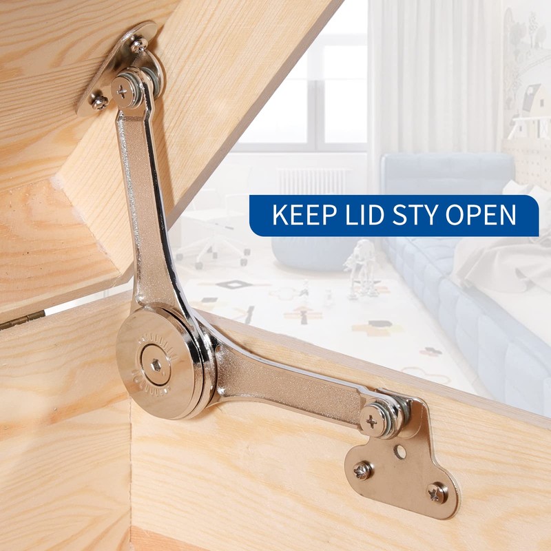 - WIDE APPLICATION LID STAY--The lid support hinge keep the lid open until you want to close. Widely usage as hinges for wooden box, such as toy box hinges, chest hinges, also fit for overhead kitchen cupboard, wardrobe lids too. Perfect for any lids or flaps when soft close lid support is required.