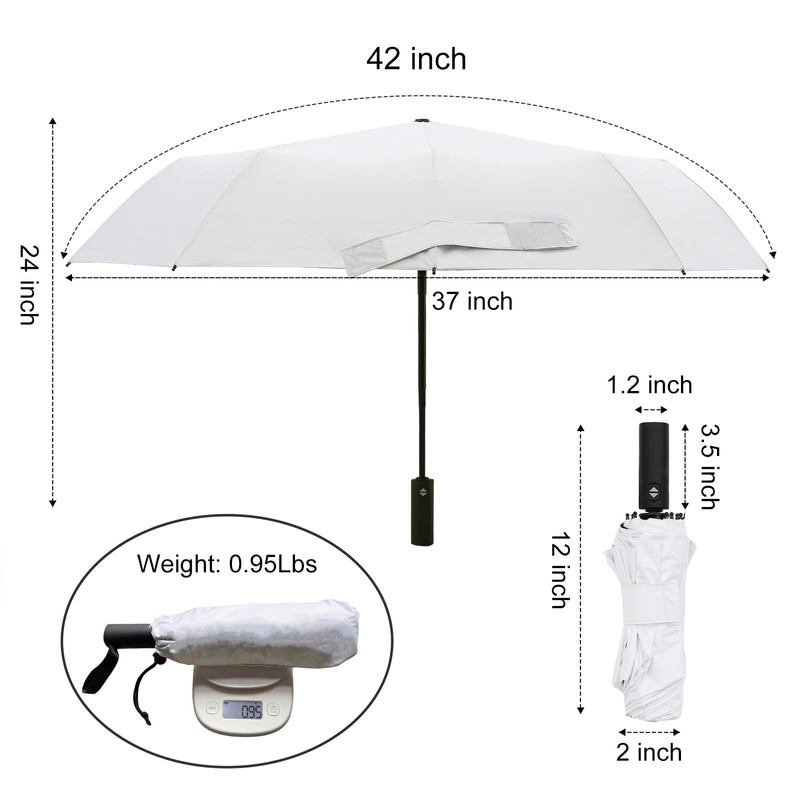 - Compact Travel UV Umbrella: when folded, it measures only about 12 inches and weighs 0.95 pounds. It's an ultra - compact and lightweight uv umbrella compact. It easily fits into handbags, briefcases, etc., taking up minimal space, making it ideal for daily outings or while walking as a sun umbrella for walking