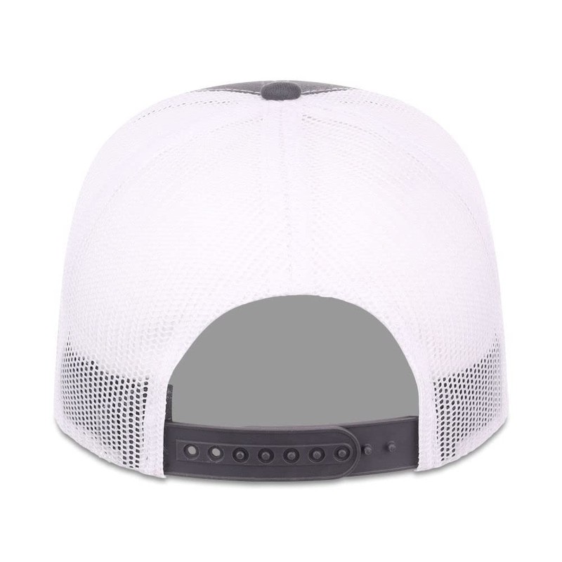 - TRUCKER: 6-panel crown, Cotton front and bill, and mesh-back crown
