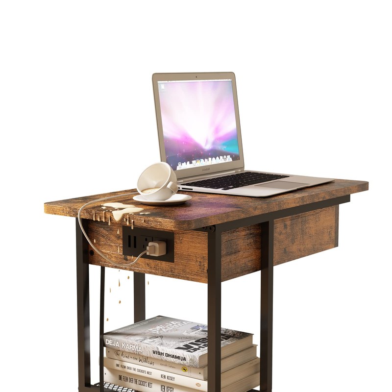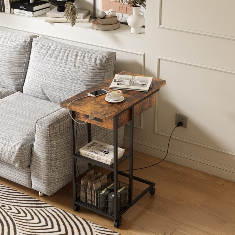 - Patented Design - Uniquely Designed C Shaped Side Table with Charging Station, a Flip Top Drawer and 2 Tiers Storage Basket Shelf, LIDYUK small side table offers you ample space to storage, meets your charging needs when using electronic devices, within your arm's reach.