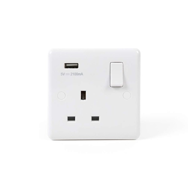 - Robustly engineered single USB switched socket with a stylish, smooth satin white finish