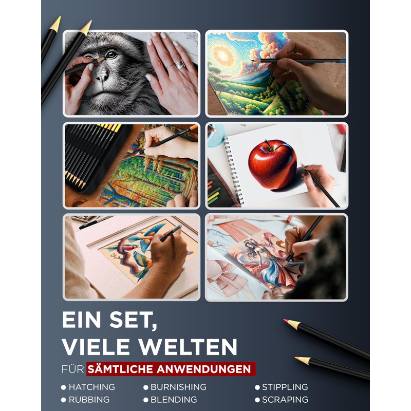 - ✔️ Perfect selection - Our coloured pencils set offers you 72 carefully selected colours. From delicate pastels to vibrant primary colours to deep earth tones. Perfect for detailed illustrations, vibrant artwork or creative DIY projects.