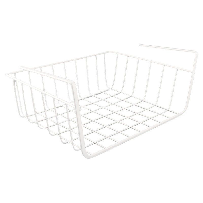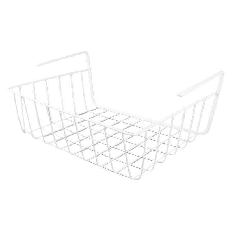 LiebeWH Metal Under Shelf Storage Basket Space Saving Hanging Basket Design for Kitchen Office Pantry Desk Bookshelf (L White)